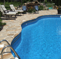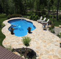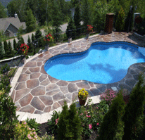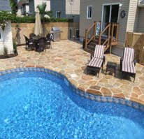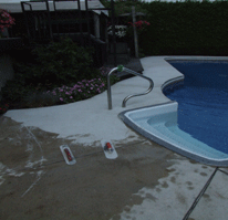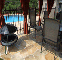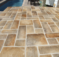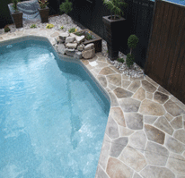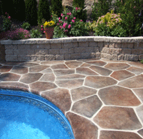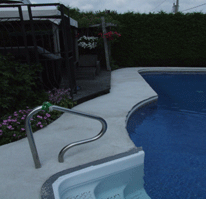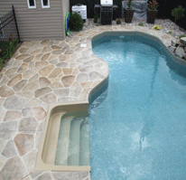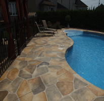 Le béton décoratif est la solution à toute réfection de trottoirs de piscine, de marches, escaliers, terrasses.